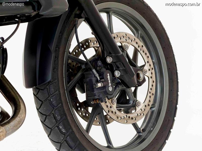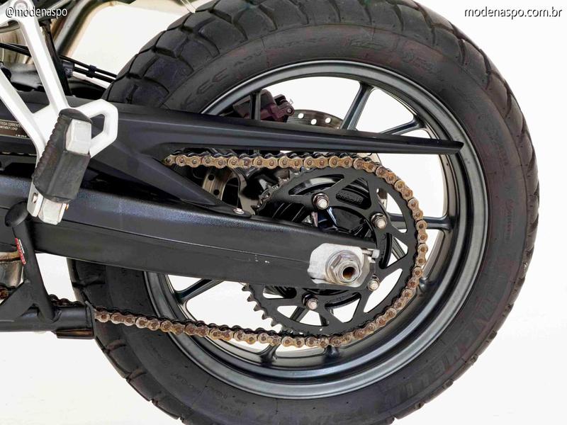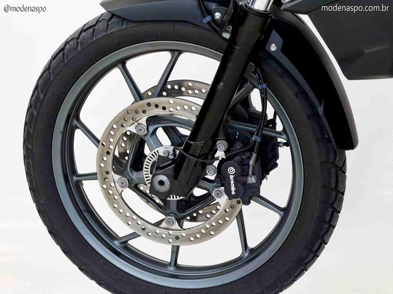 Ciclística Focada no Asfalto: A roda dianteira de 19 polegadas em liga leve e os pneus de perfil asfáltico garantem uma precisão de trajetória superior em estradas sinuosas, sem abrir mão da robustez para enfrentar estradas de terra leves.