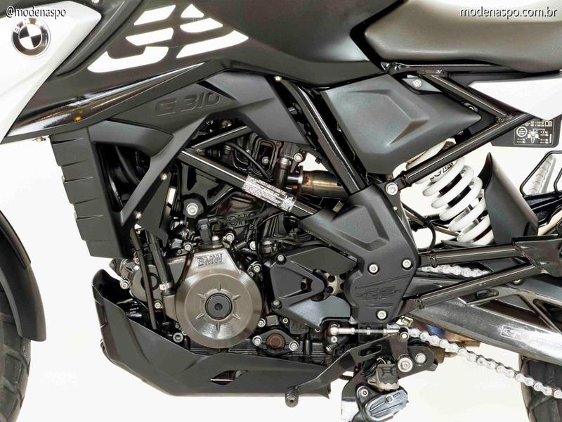 Motor Invertido e Inclinado: O motor de 313 cc possui uma arquitetura única, com o cabeçote invertido (admissão na frente e exaustão atrás). Isso permite um centro de gravidade mais baixo e uma entrada de ar mais direta, otimizando a performance.