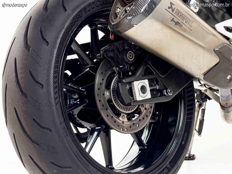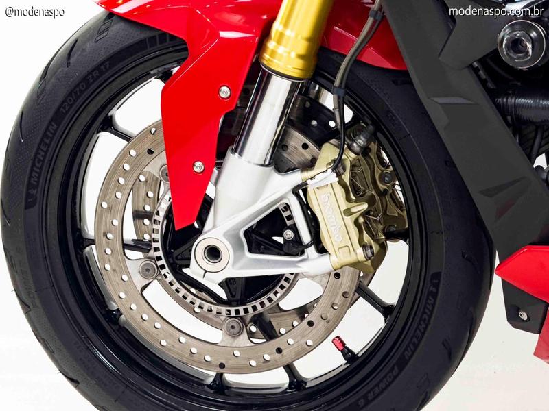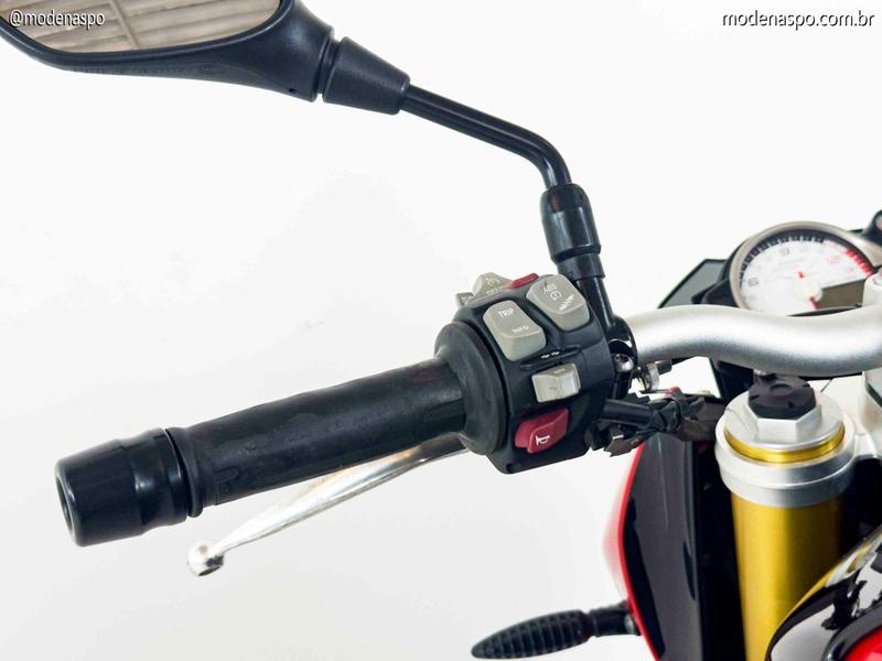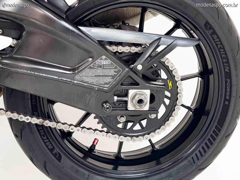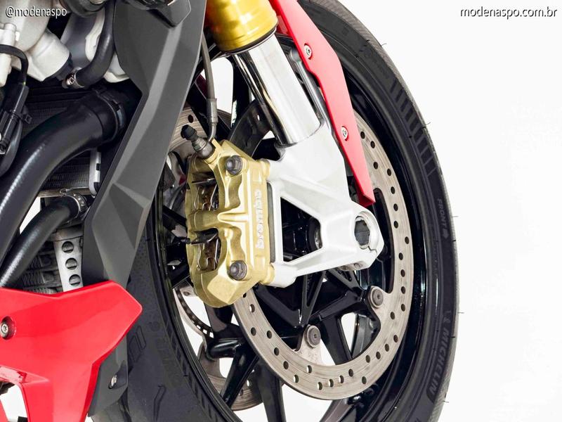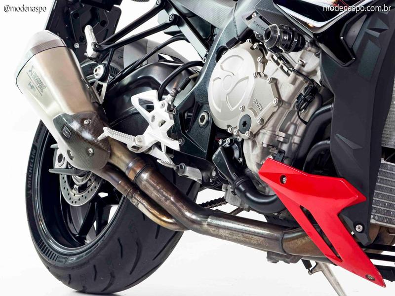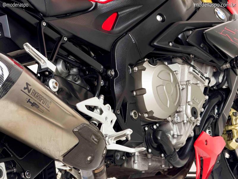 Motor Quatro Cilindros Potente: Utiliza o motor de quatro cilindros em linha, de 999 cc, o mesmo da S 1000 RR, mas reajustado (desafinado) para oferecer uma curva de torque mais cheia nas médias rotações, ideal para o uso em rua.