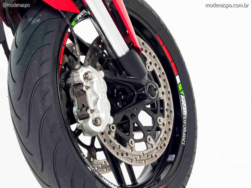 Suspensão Eletrônica (DSS): O grande diferencial da versão “S” é o Ducati Skyhook Suspension (DSS). Este sistema de suspensão semi-ativa da Sachs ajusta automaticamente o amortecimento em tempo real, adaptando-se às condições da pista, ao modo de pilotagem selecionado e à carga da moto.