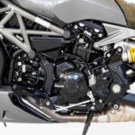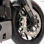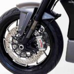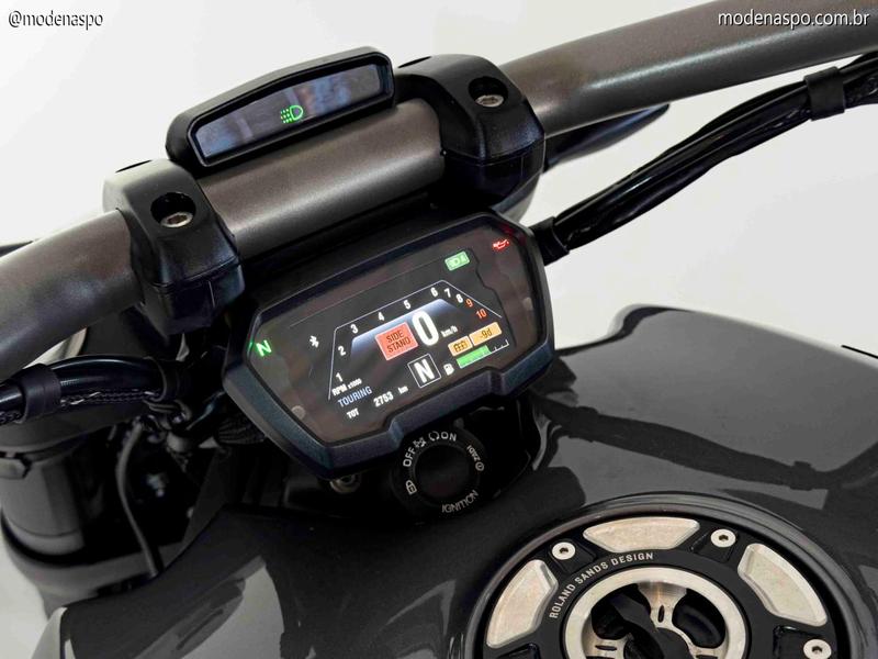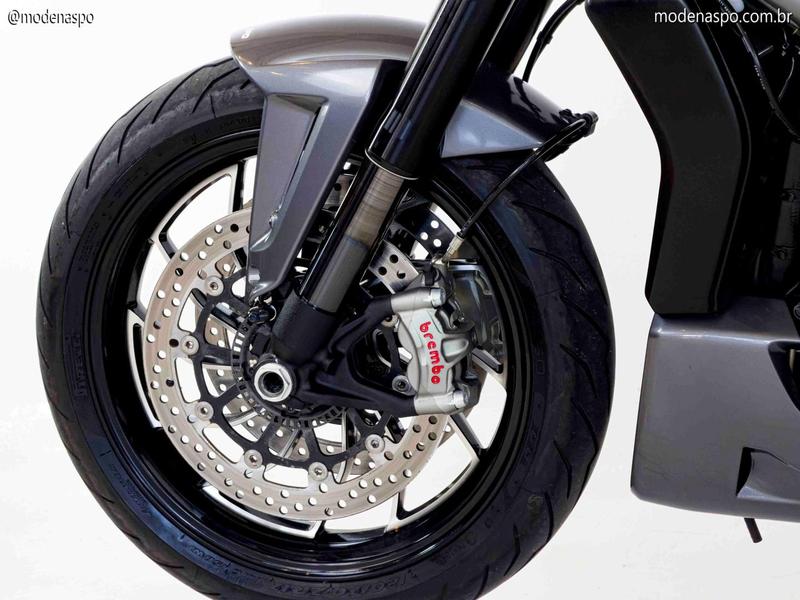 | Freios | Disco duplo de 320 mm com pinças Brembo M50 |