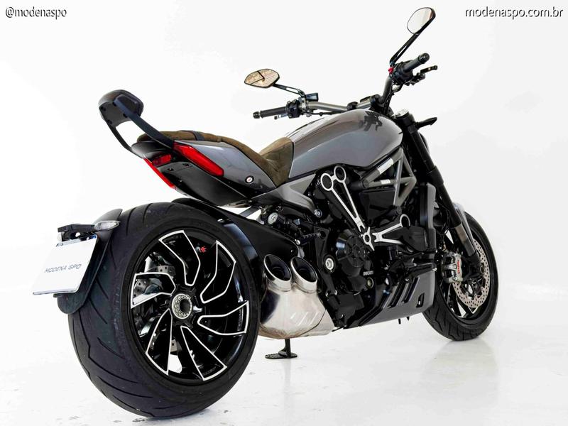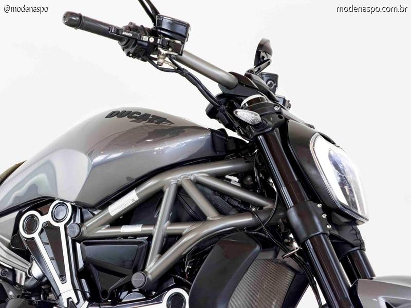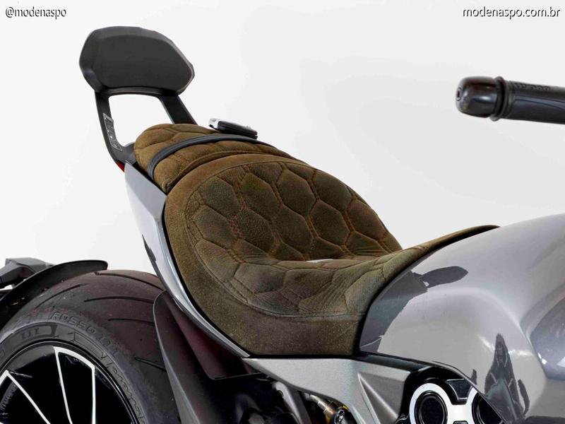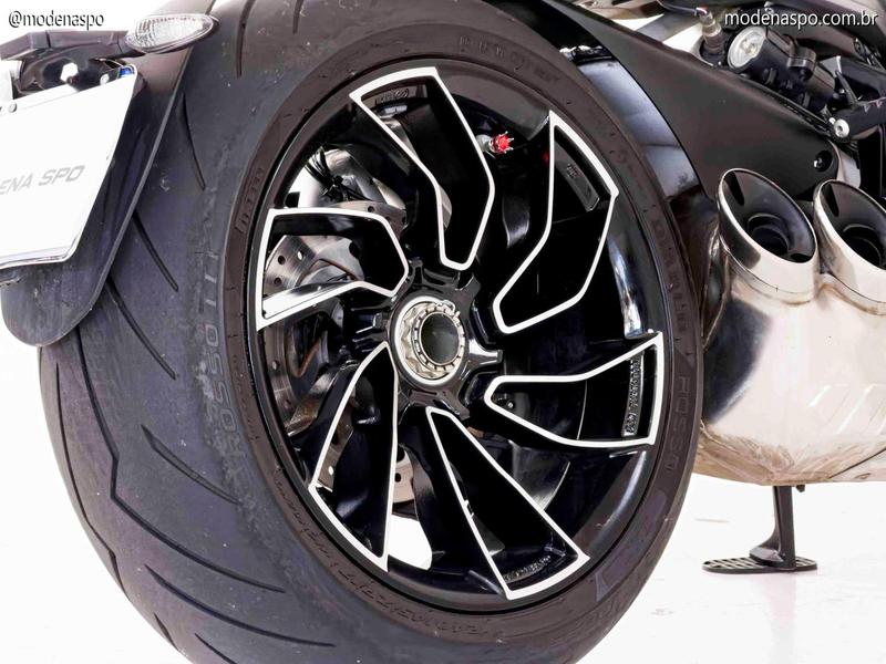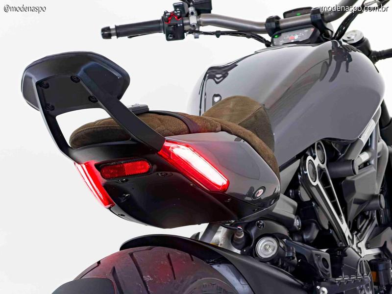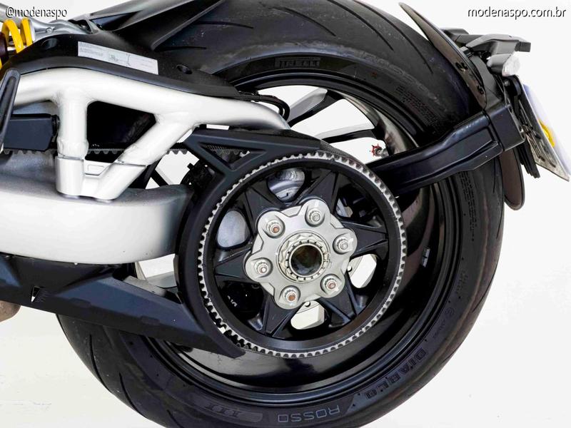 Motor Testastretta DVT 1262: Equipado com o comando de válvulas variável da Ducati, este motor entrega 160 CV de potência. O grande trunfo é o torque brutal de 13,0 kgf.m disponível já em baixas rotações, garantindo acelerações viscerais com suavidade mecânica.