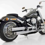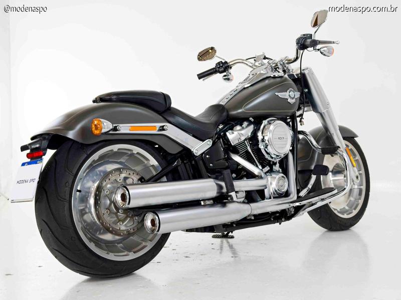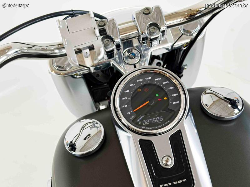 A Harley-Davidson Fat Boy FLFB 2019 é um dos maiores ícones da cultura custom mundial, imortalizada pelo cinema e pelo seu design massivo. Em 2019, o modelo já estava consolidado na nova plataforma Softail (lançada em 2018), que aposentou o antigo chassi para dar lugar a uma estrutura mais leve, rígida e com um monoamortecedor traseiro oculto. A versão FLFB é equipada com o motor Milwaukee-Eight 107, oferecendo uma pilotagem que combina o clássico torque da marca com uma eficiência mecânica e térmica muito superior às gerações anteriores.