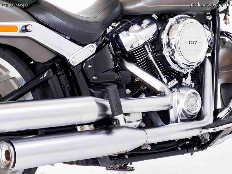 Chassi Softail Modernizado: O novo quadro redesenhado reduziu o peso total da moto e aumentou a rigidez, resultando em uma dirigibilidade muito mais precisa e ângulos de inclinação maiores do que os modelos pré-2018.