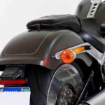Presença Visual Imbatível: O acabamento em cromo acetinado e os para-lamas recortados reforçam o estilo “rolo compressor”, fazendo com que a moto se destaque em qualquer lugar.