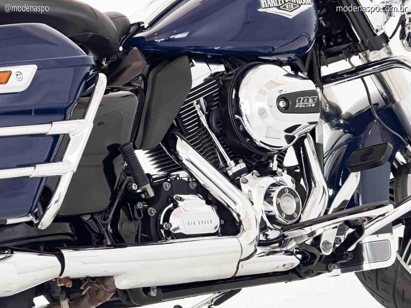 Motor Twin Cam 103 High Output: O propulsor V-Twin de 1.690 cc entrega torque massivo para mover com facilidade a moto e seus equipamentos. A versão “High Output” oferece melhor resposta em rotações médias, ideal para situações de uso intenso.