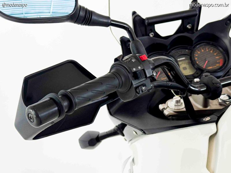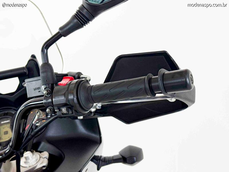 Ergonomia e Conforto: A posição de pilotagem é ereta e natural, com um assento confortável para longas jornadas. O para-brisa é ajustável em três posições, oferecendo ótima proteção aerodinâmica contra o vento e chuva.
