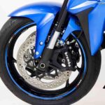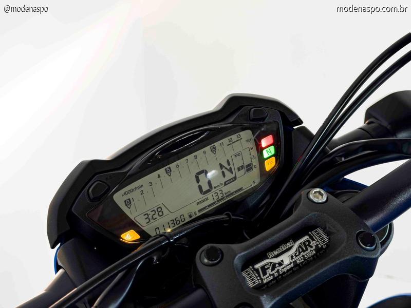 KYB: Garfo dianteiro invertido de 43 mm totalmente ajustável e suspensão traseira com ajuste de retorno e pré-carga.