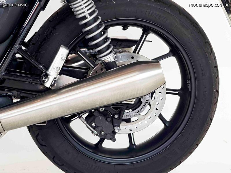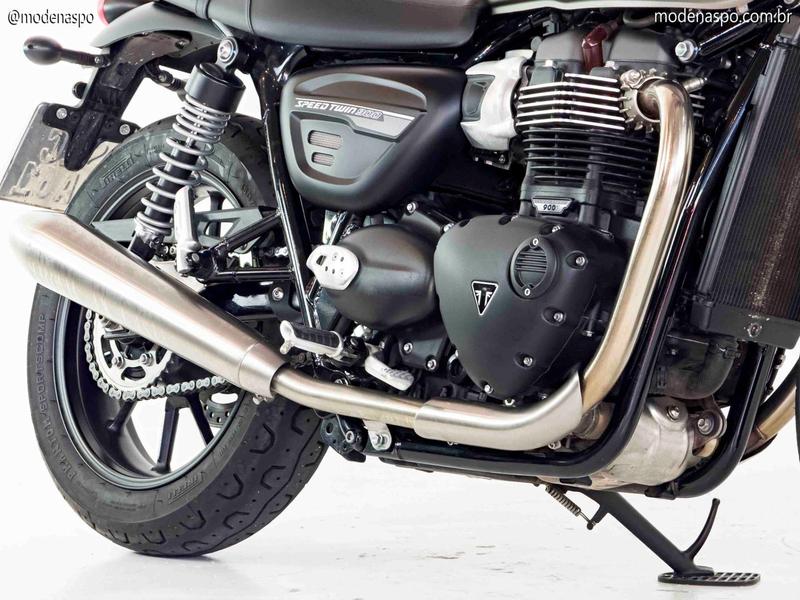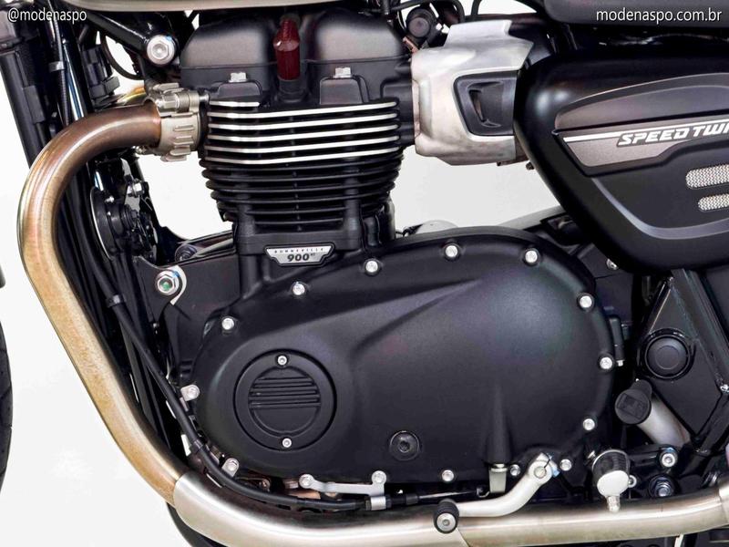 Motor Bonneville 900 High Torque: Equipada com o motor bicilíndrico paralelo de 900 cc, com refrigeração líquida e intervalo de ignição de 270°. Ele é projetado para entregar o torque máximo muito cedo, o que garante arrancadas vigorosas e uma pilotagem muito prazerosa na cidade.