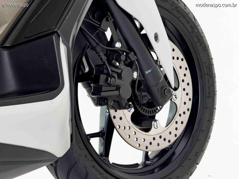 Segurança Ativa: Equipada com freios ABS de dois canais e Controle de Tração (TCS), sistema que evita o deslizamento da roda traseira em pisos escorregadios ou acelerações bruscas.